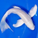 Known as Purachina (poo-RAH-chee-nah) Ogon in Japan, this metallic, all-white koi is one of the most sought after. It is important that the white coloring be uniform. Any scars or other blemishes also make it less desirable.
